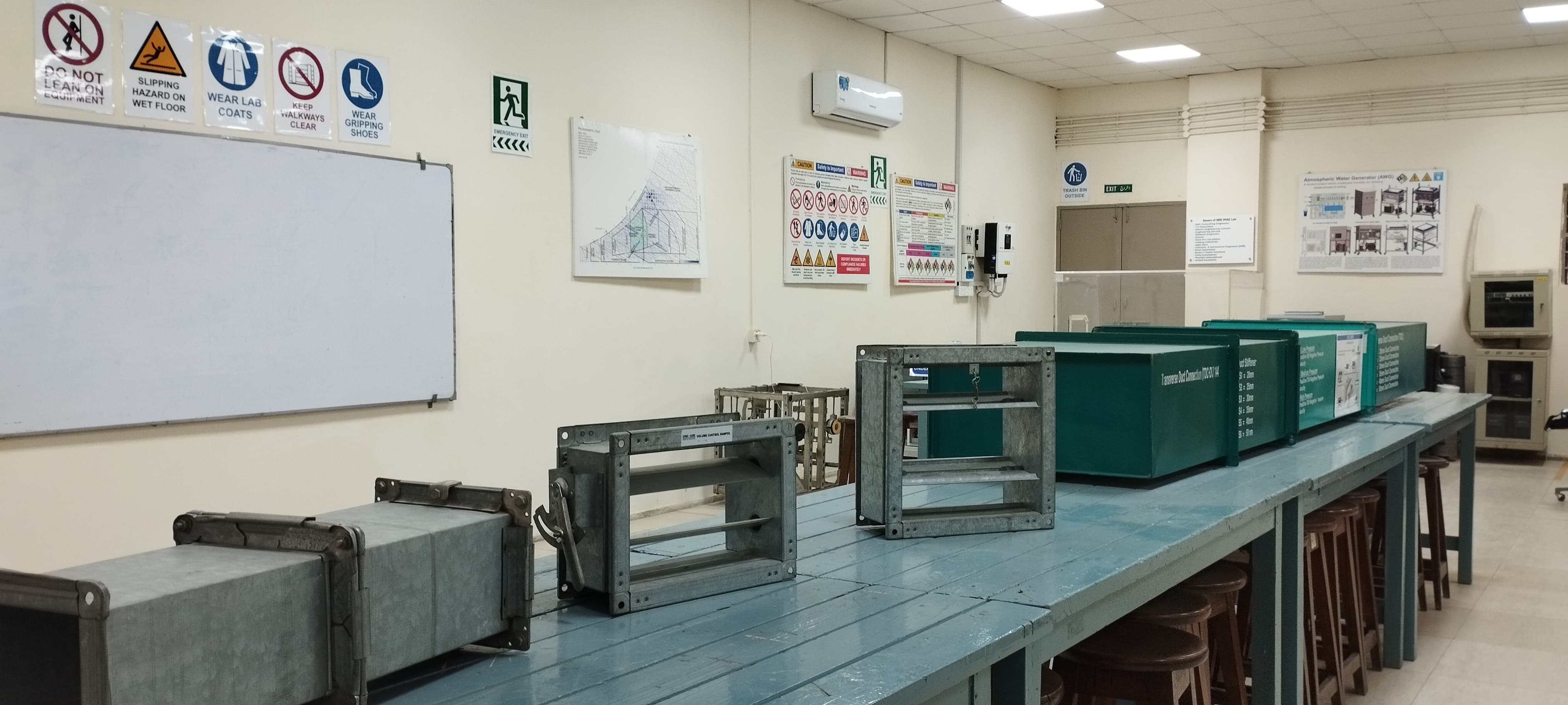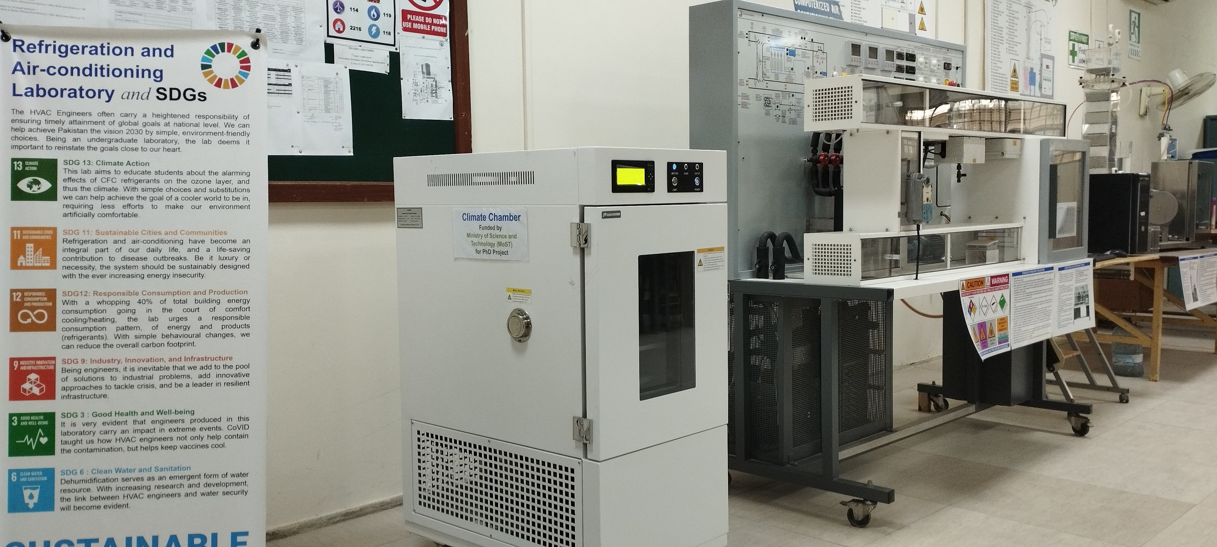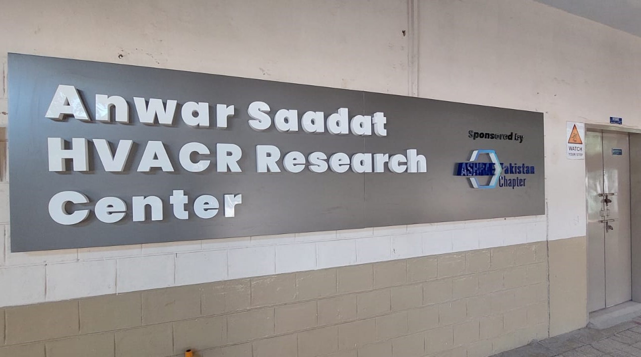 The Anwar Saadat HVACR Research Center has been established in the Department of Mechanical Engineering, sponsored by the ASHRAE Pakistan Chapter. This facility is aimed at promoting advanced research and practical training in heating, ventilation, air conditioning, and refrigeration systems.